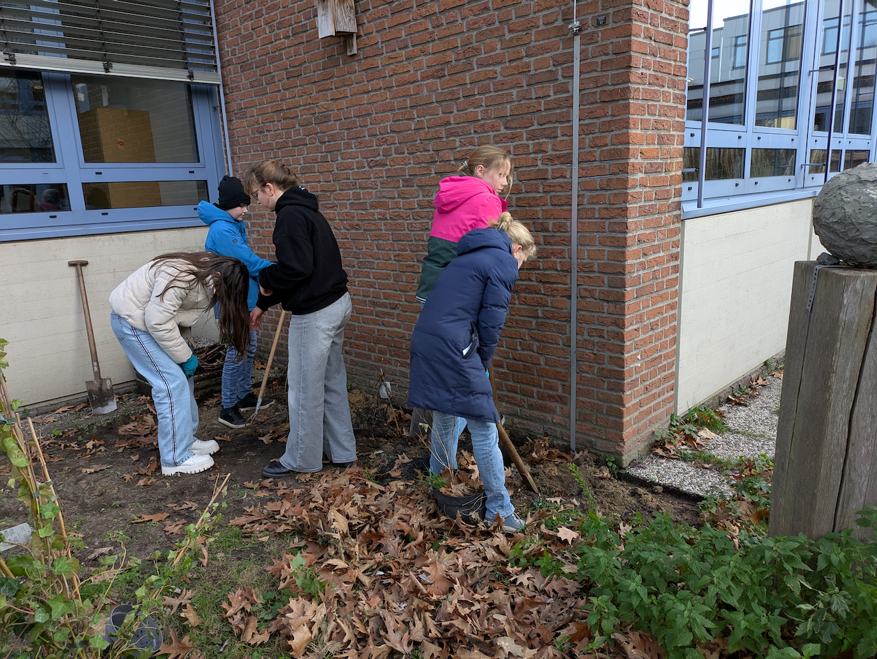 So wurden in einem ersten Einsatz Anfang Oktober kurz vor den Herbstferien durch eine achte Klasse 120 Efeupflanzen an einigen Wänden des Oberstufentraktes gepflanzt. Nun wurde das Projekt kurz vor den Weihnachtsferien durch die Biotop-AG des Martinums, die von der Biologielehrerin Bianca Schlarmann betreut wird, erfolgreich abgeschlossen. Durch die Schüler*innen bepflanzt wurden Wände des Oberstufentraktes, der Mensa, der Sporthalle, am Lehrerparkplatz und im Schulbiotop. Zur Vergrößerung der Artenvielfalt wurden dieses Mal Ketterhortensien, Chinesischer Blauregen, Ramblerrosen und Wilder Wein gesetzt, deren Blüten Nahrung für Insekten liefern, die wiederum eine Nahrungsquelle für unterschiedliche Singvogelarten darstellen. Dabei wurde auf unterschiedliche Blühzeiten geachtet. So liegt der Beginn der ersten Blüte des Chinesischen Blauregens Anfang Mai, während Efeu mit seiner späten Blüte im Oktober November die letzte überlebenswichtige Nahrungsquelle für die Insekten vor dem Einbruch des Winters darstellt. Darüber hinaus wird die Zukunft zeigen, wie sich angesichts des Klimawandels die Fassadenbegrünung auf die Temperatur in den Klassenräumen im Winter und im Sommer auswirkt. Erste Forschungsergebnisse belegen im Sommer einen deutlich kühlenden, im Winter einen erkennbar dämmenden Effekt. Darüber hinaus wurde in einem Forschungsprojekt der Uni Köln nachgewiesen, dass insbesondere Efeu, das nach gängiger Meinung eine gebäudeschädigende Wirkung hat, nicht nur das den Klimawandel fördernde Gas Kohlenstoffdioxid absorbiert, sondern auch gesundheitsschädliche Stickoxide, z,,B, aus Autoabgasen, und zudem auch Feinstäube aus der Luft herausfiltert. (https://uni-koeln.de/universitaet/aktuell/meldungen/meldungen-detail/begruente-fassaden-in-den-staedten-helfen-gegen-feinstaub-stickoxide-und-hitze )