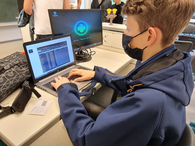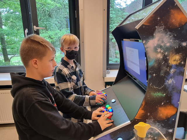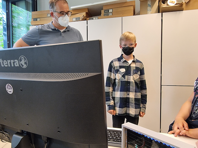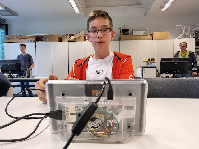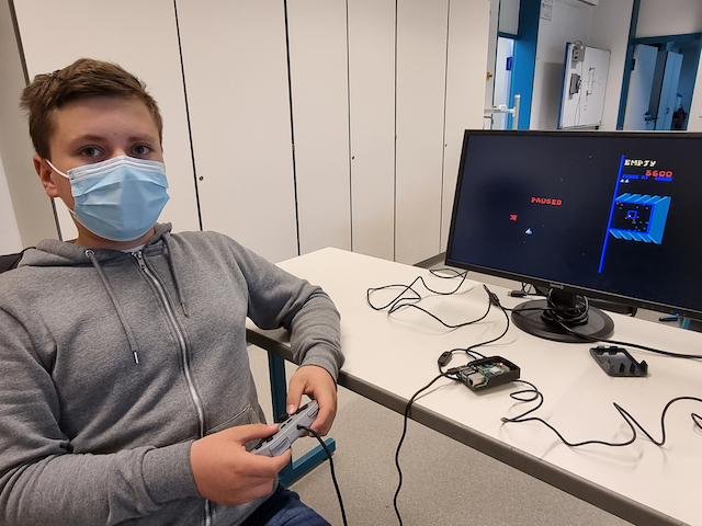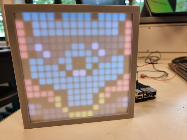 Der Pi kann auch als Videoüberwachungssystem konfiguriert und dann als wachsames Auge für Nistkästen von Vögeln oder Fledermäusen eingebaut werden. Einige Jungen haben den Microcomputer in Form einer Retro-Spielekonsole verbaut. Dabei waren mehrere Größen vertreten, von der portablen Variante bis zur großen Arcade-Maschine. Ein kleiner Roboter durfte ebenfalls nicht fehlen. Ein besonderes Highlight war ein NFT-Screen von Lorenz Sandfort. Er hat zunächst eigene sog. NFT’s erstellt. Dieses digitale Gut, als Bild in einer Größe von 8X8 Pixeln, wird durch eine Blockchain so verarbeitet, dass es nicht verändert oder kopiert werden kann. Damit man aber das Bild sich auch anschauen kann, hat Lorenz eine LED-Matrix mit der passenden Größe gebaut, die dann von dem Raspberry Pi so angesteuert wird, dass die einzelnen LEDs die Pixel des Bildes darstellen. So kann man sein Werk in einem Bilderrahmen betrachten, welches in einem 3D-Drucker ausgedruckt wurde. Die vielen Projekte wurde durch den Förderverein und durch die Sparkasse Emsdetten Ochtrup ermöglicht.