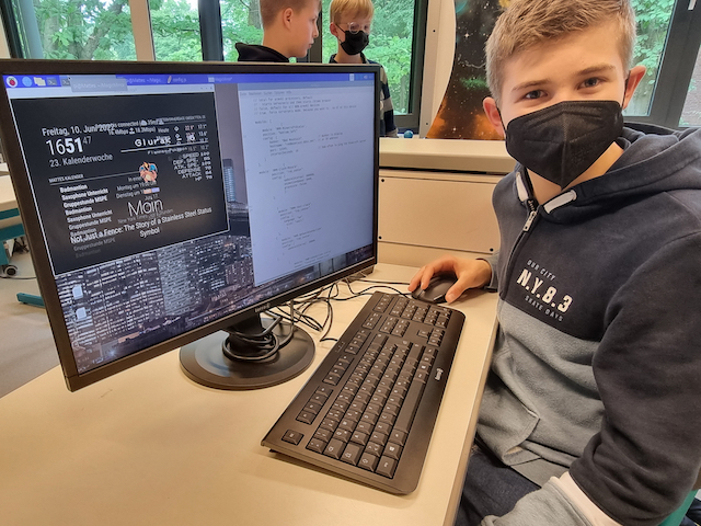 Zum fünften Mal haben Schüler*innen am Martinum sich mit dem Raspberry Pi auseinandergesetzt, Grundlagen erlernt und eigene Projekte umgesetzt. In diesem Jahr war wieder einmal der Smart Mirror als Projekt sehr gefragt. Dabei wird hinter einem Spionspiegel ein Monitor von dem Raspberry Pi angesteuert, der dann Termine, Datum, Uhrzeit, Wetter und News anzeigt.