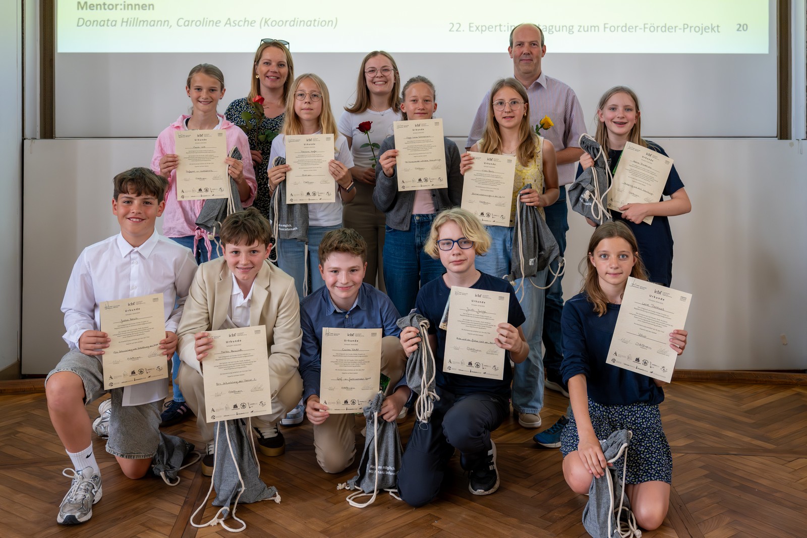 Sechstklässler:innen des Gymnasiums Martinum haben bei der großen Expertentagung im Münsteraner Schloss ihre Forschungsergebnisse vor Publikum vorgestellt. Die Aufregung war groß, als die zehn Schüler:innen die große Aula des Schlosses der Universität Münster betraten. Um sie herum versammelten sich andere Schüler:innen und Eltern, die auf Einladung des Internationalen Centrums für Begabungsforschung der Universität Münster zur großen Expertentagung kamen, die unter der Leitung von Prof. Dr. Christian Fischer organisiert wurde. Für die jungen Forscher:innen war dies der krönende Abschluss ihrer Arbeit: die Präsentation ihrer Expertenvorträge vor Publikum.