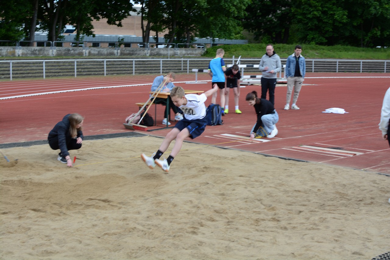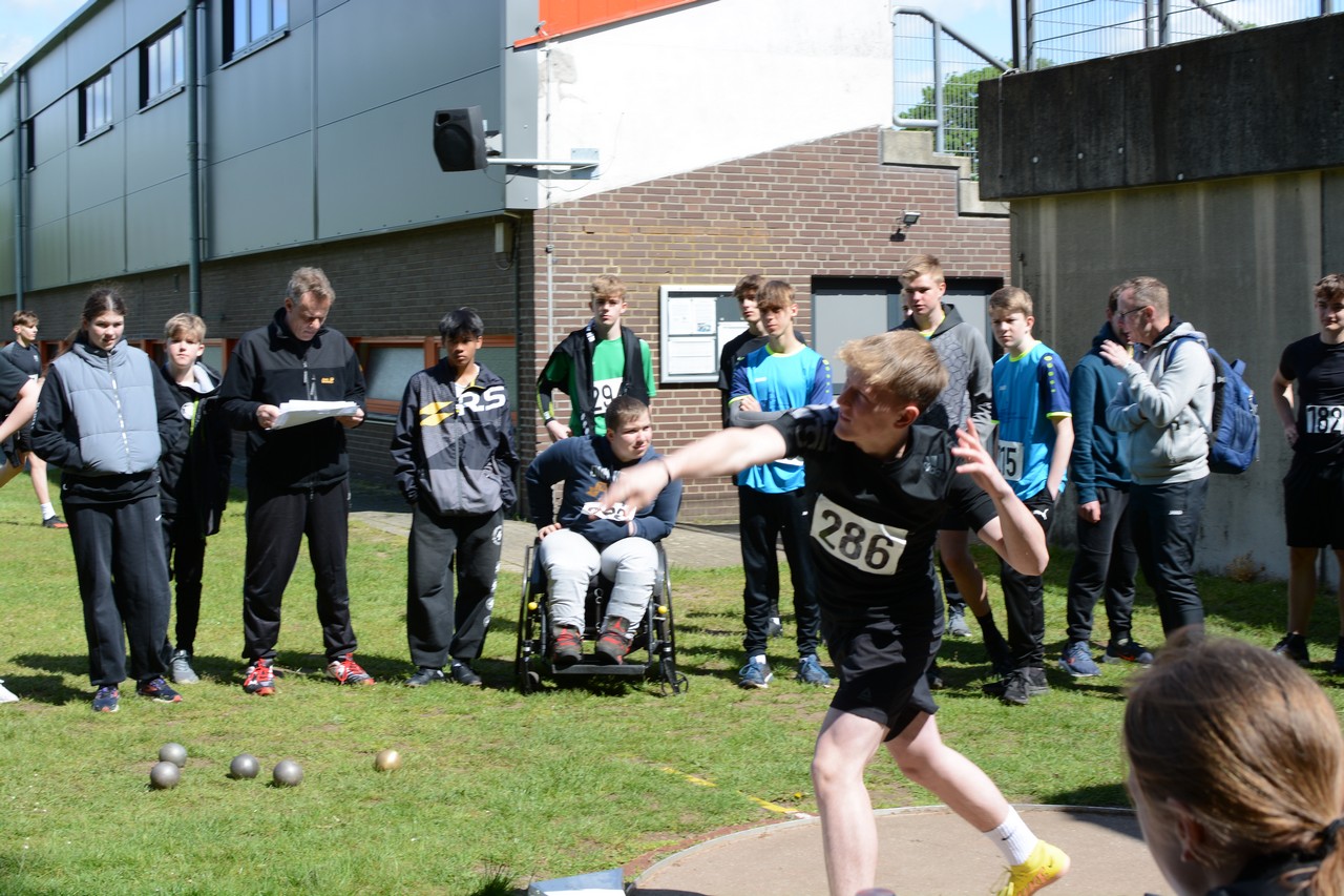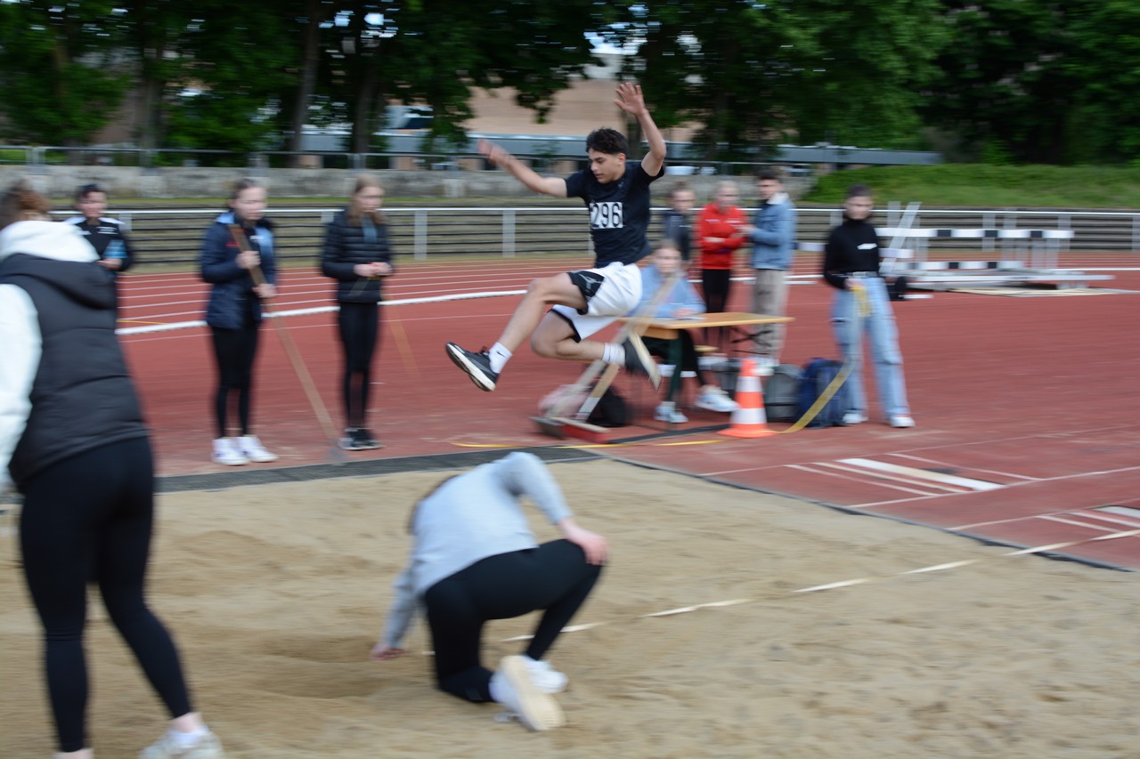 Bereits früh morgens versammelten sich alle SportlerInnen der Jahrgänge 2008-2011 an der Schule,um später mit dem Bus zum Jahn-Stadion zu fahren.Hier machten sich dann alle gemeinsam warm und starteten ein wenig später in ihre Disziplinen, also zum Beispiel Kugelstoßen, Hochsprung, Sprint und vieles mehr. Jede/r SchülerIn wurde tatkräftig unterstützt und alle fieberten mit, wodurch eine grandiose Stimmung entstand.