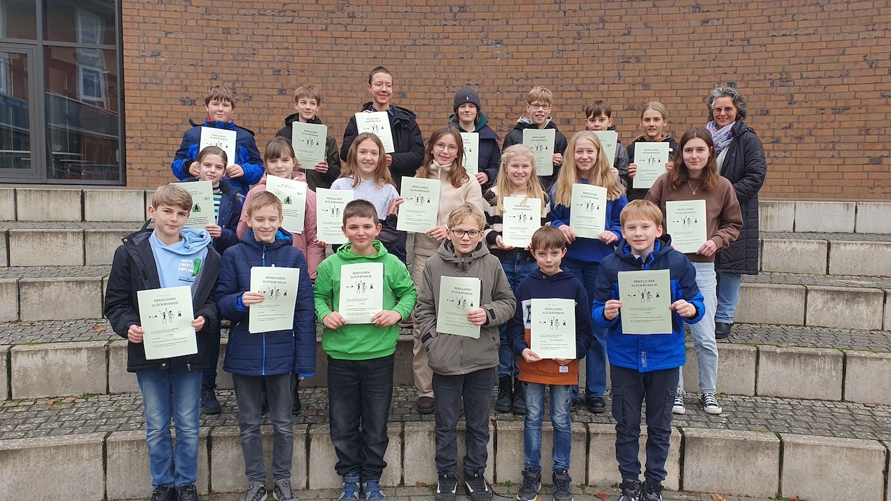 Der Einsatz hat sich gelohnt und unsere stellvertretende Schulleiterin Barbara Frost konnte allen Teilnehmer*innen bei einer schulinternen Siegerehrung ihre Urkunde übergeben. Darunter gab es zahlreiche Preisträger*innen: