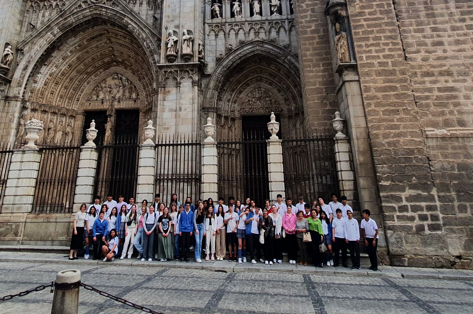 Von der Kathedrale in Toledo senden 18 Schüler:innen der Jahrgangsstufen EF und Q1 mit Frau Uennigmann und Frau Gausling herzliche Grüße. Die Gruppe ist dort für eine Woche im Rahmen eines Austauschprojekts mit Spanien unterwegs.