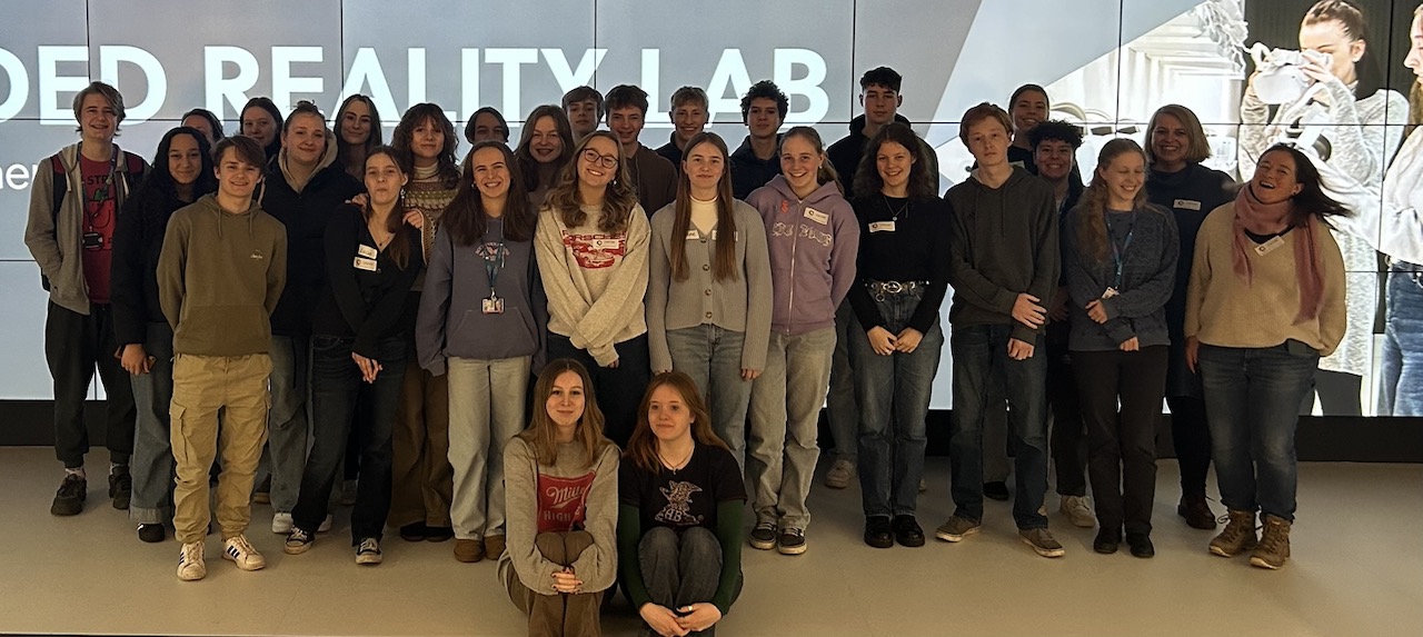 Am Montag konnte die deutschen Teilnehmer*innen dann das Schulleben am Abbeygate Sixth Form College kennenlernen. Bei einer Schulführung durch die englischen Schüler*innen Wilf Menuge und Lana Norton-Berry konnten sie verschiedenen Räumlichkeiten der Schule besichtigen. Marion Quellenberg-Brune, die nicht nur Englisch sondern auch Sport am Martinum unterrichtet, zeigte sich besonders begeistert von dem Tanzstudio und nutzte direkt die Gelegenheit, eine kleine Tanzstunde mit den Schüler*innen zu initiieren. Bei einer gemeinsamen Deutschstunde zum Thema „Jugend und Politik in Deutschland“ sowie der Hospitation in verschiedenen anderen Unterrichtsfächern konnten die deutschen Jugendlichen dann einen Eindruck vom Unterricht an der Partnerschule gewinnen.