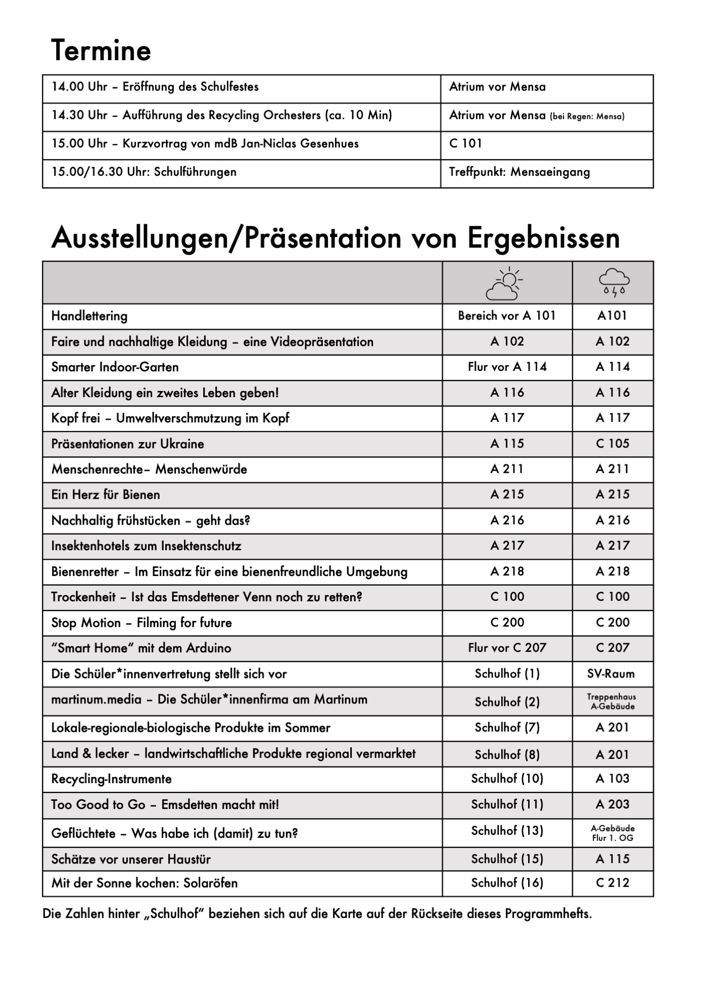 Nach dreitägiger Vorbereitung in den unterschiedlichsten Projektgruppen war es am Freitagnachmittag so weit: Ab 14 Uhr herrschte reges Treiben auf dem Schulgelände des Gymnasiums Martinum. Alle Arbeitsgruppen präsentierten stolz die Ergebnisse ihrer Arbeit. Hier einige Impressionen!
