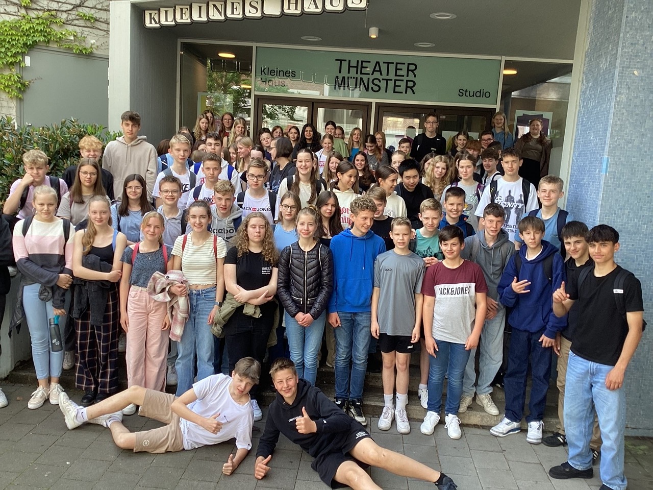 Am 04.05.23 sind 44 französische Austauschschüler:innen mit drei Lehrkräften aus Amiens in Emsdetten eingetroffen. Sie lernen hier für eine Woche deutsches Schulleben kennen und werden Ausflüge nach Münster und Köln unternehmen. Stolz präsentieren sie ein Foto der illuminierten Kathedrale von Amiens als Gastgeschenk.
