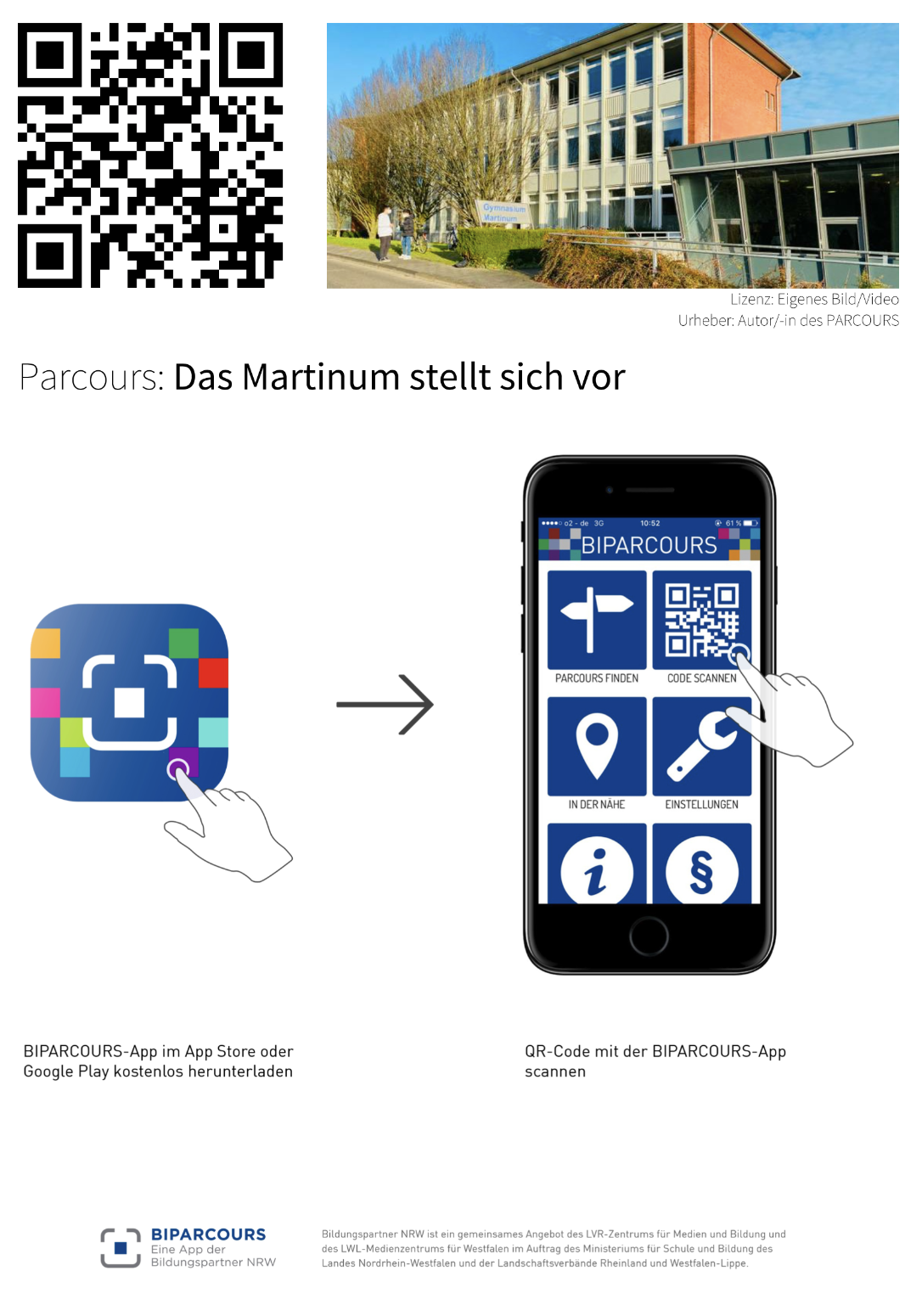 - Dann könnt ihr zur digitalen Schatzsuche rund um das Martinum starten und die verschiedenen Gebäude und die Außenanlagen bei einem Spaziergang erkunden. Wer dabei noch die Rätselfragen bis Ende Januar richtig löst, nimmt an einem Gewinnspiel teil und kann schöne Preise gewinnen.
