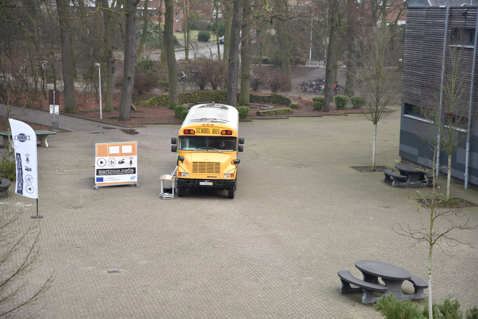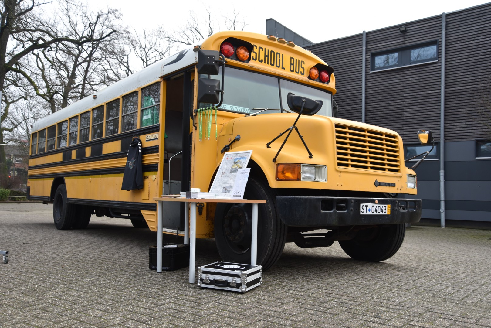 Ein besonderes Highlight war an diesem Vormittag das neuste Projekt der Schülerfirma Martinum Media: ein amerikanischer Schulbus. Mitten auf dem Schulhof strahlte er in knalligem Gelb und lud zum Bestaunen und Testen ein. Die Schülerfirma war selbst vor Ort und stellten den Schulbus allen Interessierten mit viel Freude vor. Fasziniert waren dabei nicht nur viele Schülerinnen und Schüler, sondern auch ihre älteren Begleitpersonen.