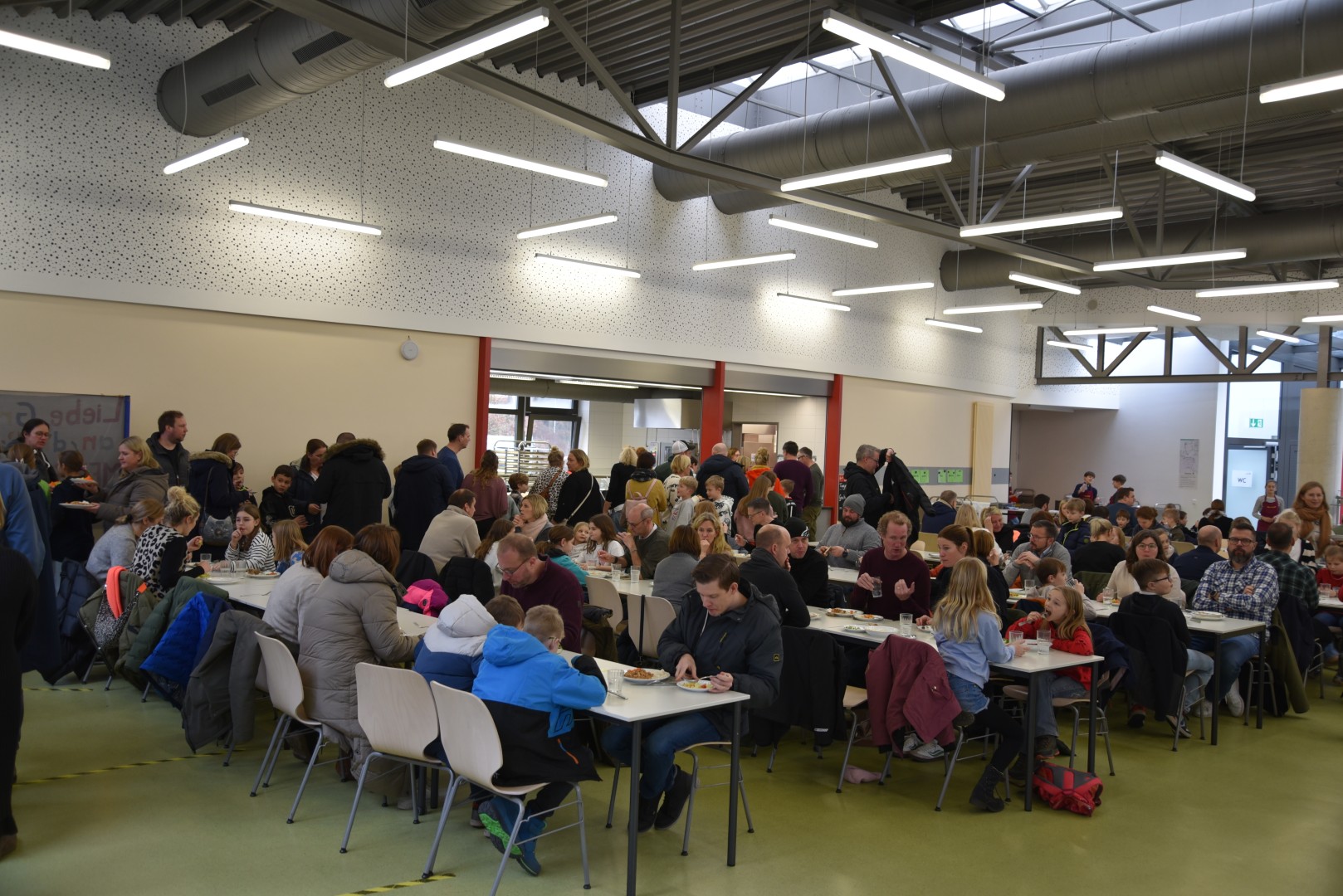 Diese erhielten in einer Schulführung neben einem Überblick über das weiträumige Schulgelände Einblick in das gymnasiale Schulleben. Neben den zahlreichen fachlichen Projekten zur sportlichen, musikalischen oder auch naturwissenschaftlichen Förderung wurde auch die individuelle Förderung im Bereich des Coachings und in der Schulsozialarbeit vorgestellt. Schüler/-innen stellten ihre Beiträge zum Jugend-forscht-Wettbewerb vor. Ebenso gaben der Förderverein und die Schülervertretung Gelegenheit, in den Austausch mit der Schulgemeinde zu kommen. Zu Abschluss des Schnuppermorgens konnte schließlich auch noch die schuleigene Mensa beim Mittagessen ausgiebig getestet werden.