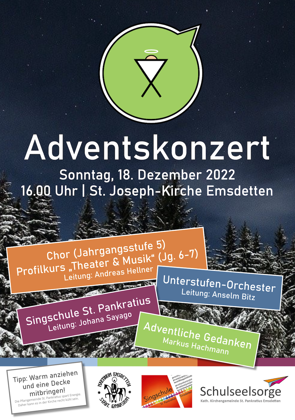 Am Sonntag, 18. Dezember 2022, fand in der St. Joseph-Kirche - nach zwei Jahren coranabedingter Pause - wieder das Adventskonzert des Martinums und der Singschule St. Pankratius statt.