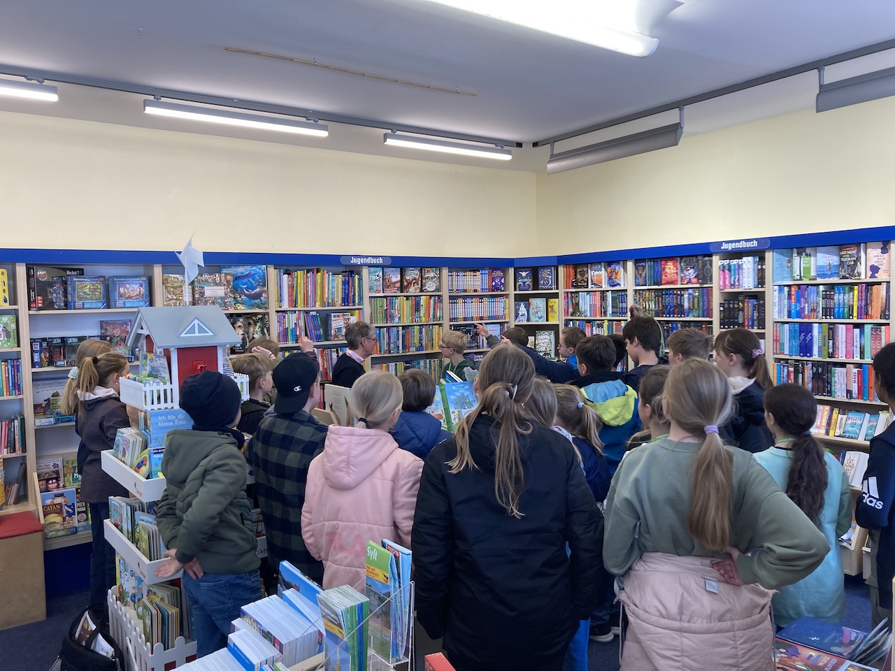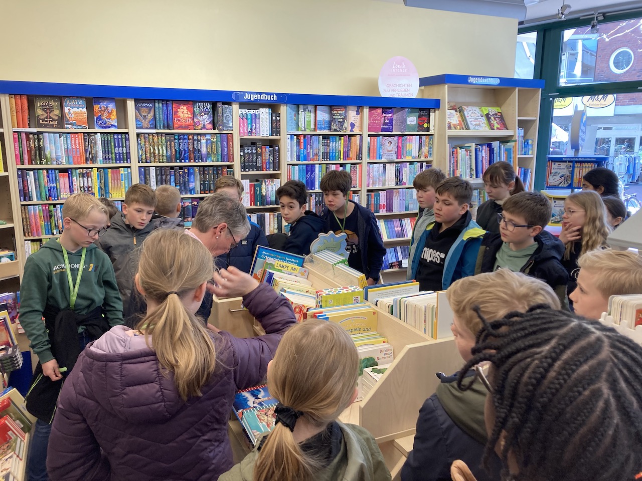 Anlässlich des Welttag des Buches am 23. April 2023 veranstaltete die Stiftung Lesen gemeinsam mit Buchhandlungen in ganz Deutschland wieder die Aktion „Ich schenke dir eine Geschichte“ für alle Viert- und Fünftklässler*innen. Hierbei erhielten die Schülerinnen und Schüler nicht nur einen Gutschein für das Jugendbuch „Volle Fahrt ins Abenteuer“, sondern auch die Gelegenheit, eine Buchhandlung aus der Nähe zu betrachten.