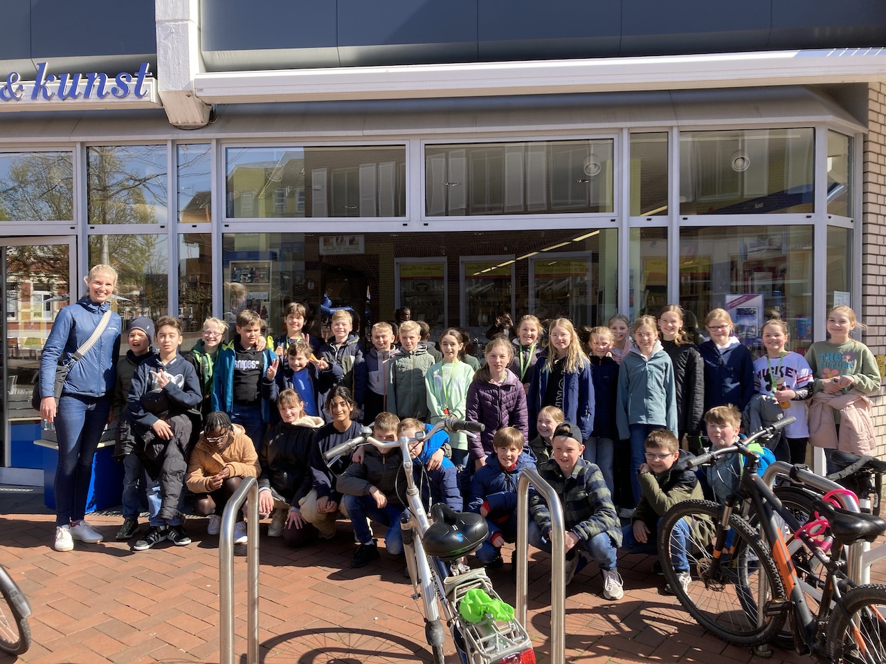 Demnach machte sich die Klasse 5d am Donnerstag, 27. April 2023, auf den Weg zur Buchhandlung „Buch & Kunst“. Vor Ort nahm sich die Buchhändlerin Bettina Schwarte viel Zeit für die Klasse. Die Schülerinnen und Schüler lernten die unterschiedlichen Bereiche in der Buchhandlung kennen. Zudem gab Frau Schwarte auch einen umfangreichen Einblick in die Welt des Buchhandels und in das Arbeitsfeld des Buchhändlers. So erklärte sie den Weg von der Bestellung eines Buches bis zur Abholung. Dabei wurde auch deutlich, wofür die ISBN-Nummer so wichtig ist. Gespannt betrachtete die Lerngruppe ein von Frau Schwarte präsentiertes früheres Nachschlagewerk, welches vor der Digitalisierung zur Bestellung eines Buches herangezogen werden musste. Mit vielen Anekdoten über ihre persönliche Bücherbeziehung kam die Buchhändlerin in den Austausch über die Leseerfahrungen der Schülerinnen und Schüler. Mit dem Buchgeschenk zum Abschluss wurde dabei nicht nur die Neugier auf ein neues Lesevergnügen, sondern auch die allgemeine Begeisterung für das Lesen geweckt.