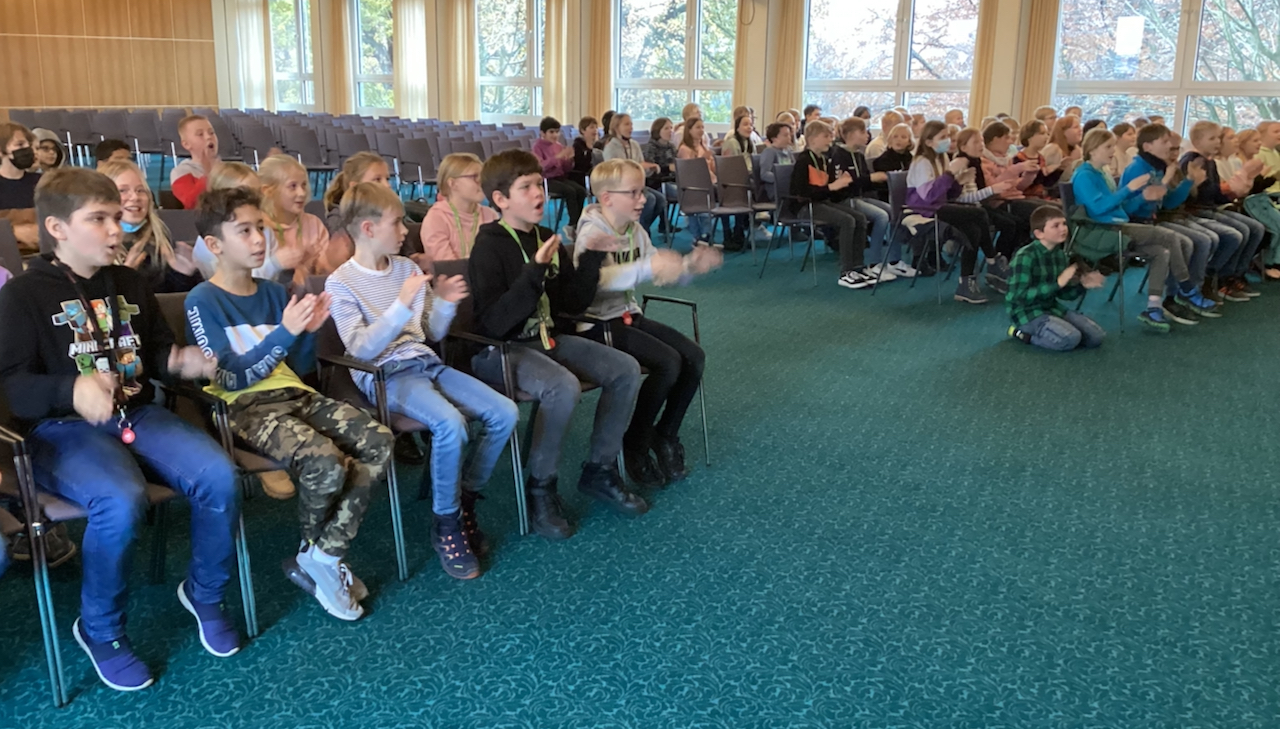 Nach der erfolgreichen Wette um die meisten Spenden zum Martinsfest kam es am Montag, dem 5. Dezember 2022, zur Einlösung des Wetteinsatzes. Dafür gingen alle Fünftklässer*innen des Martinums in der fünften Stunde in die Aula, da dort als Wetteinlösung ein Rudelsingen stattfinden sollte.