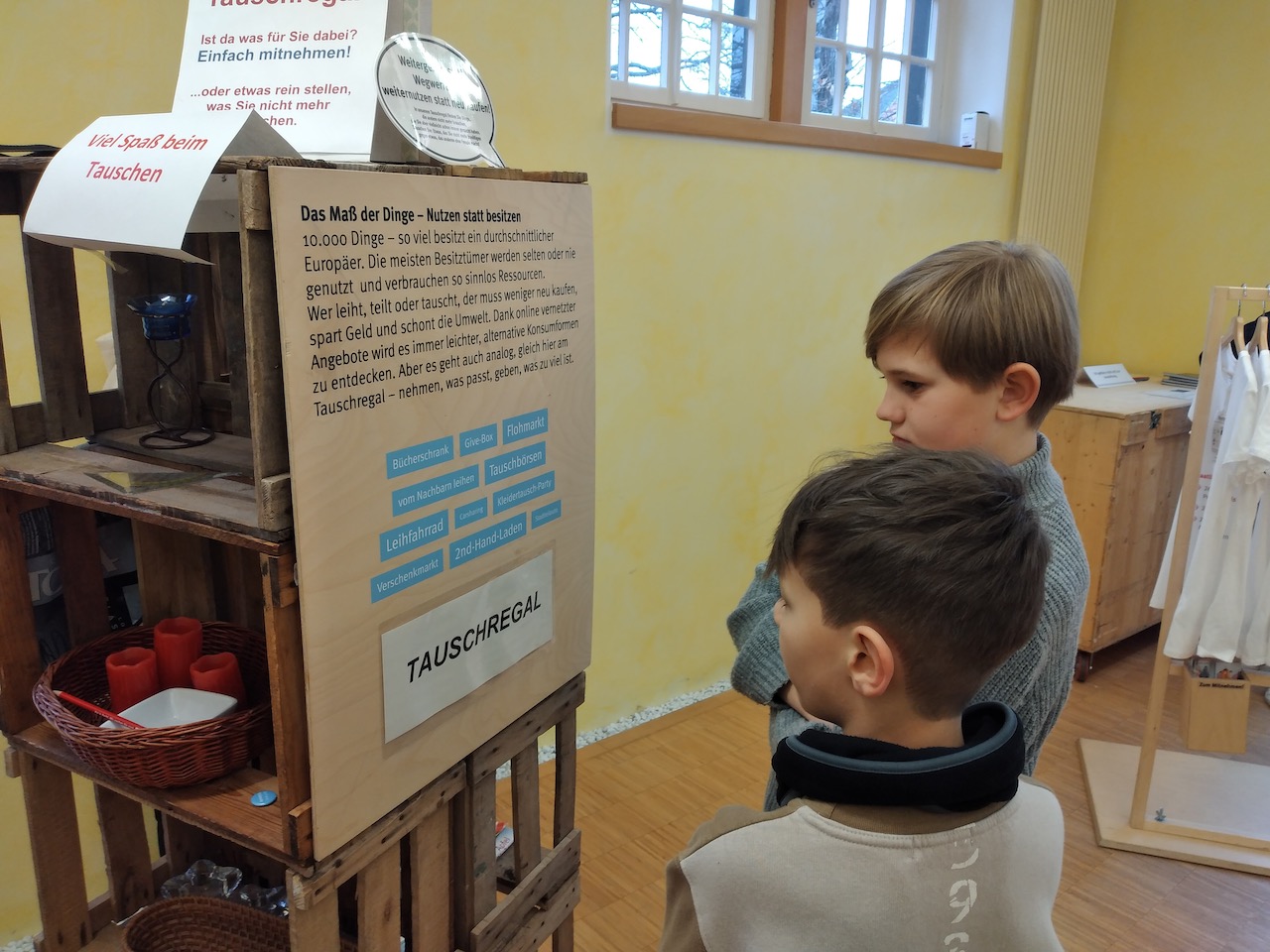 Wie wäre es, wenn wir uns eine Bohrmaschine mit unserem Nachbarn teilen? Die derzeitige durchschnittliche Nutzungsdauer pro Gerät von sage und schreibe 13 Minuten in der Gesamtsumme, die nicht nur Mitschülerin Lilith „überrascht und ärgert“, ließe sich so ohne Mühe erhöhen. Auch die im Schnitt 34 Einwegbecher pro Person und Jahr schienen der Klasse nicht das letzte Wort sein zu müssen.