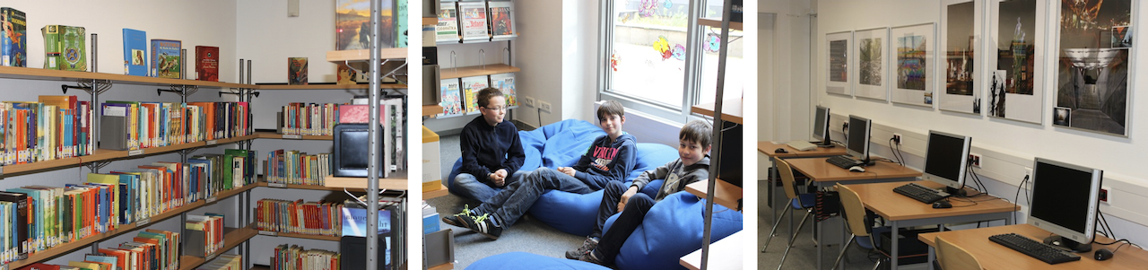 Die Mediothek verfügt neben einem breiten Bücher-angebot zudem über derzeit 6 PC-Arbeitsplätze, an denen ihr arbeiten könnt, und weiteren 3 PC-Arbeitsplätzen für die Lehrer*innen. Für eine entspannte Lese- und Lernatmosphäre stehen euch zahlreiche Einzel- und Gruppentische, ein Sofa, eine Leseecke und Sitzsäcke zur Verfügung.