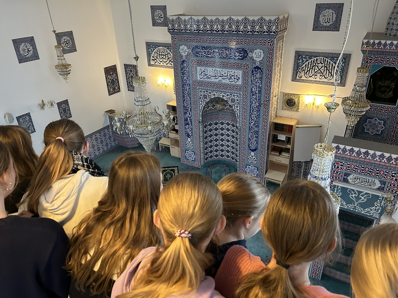 Während der Führung erfuhren die Schülerinnen und Schüler viel über die Traditionen und den Glauben der Muslime. Ein Highlight war das Vorlesen der ersten Sure des Korans im Original auf Arabisch. „Es war spannend zu hören, wie Arabisch klingt“, meinte Felix begeistert. Die Führerin erklärte anschließend die Bedeutung der Sure, wodurch die Klasse verstehen konnte, dass am Anfang des Korans ein Lob Allahs steht.