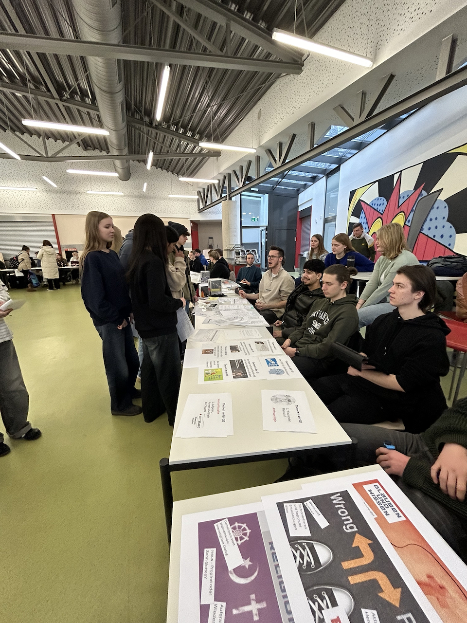Auch in diesem Schuljahr hatten die Schüler:innen aller 10er Klassen des Martinums wieder die Möglichkeit, sich über die Fächer der gymnasialen Oberstufe zu informieren. Dafür standen an kleinen Info-Ständen jeweils 2 - 4 Oberstufenschüler:innen der Stufe Q2 bereit, um ihre Fragen zu beantworten und Materialien zu den unterschiedlichen Fächern zu präsentieren.