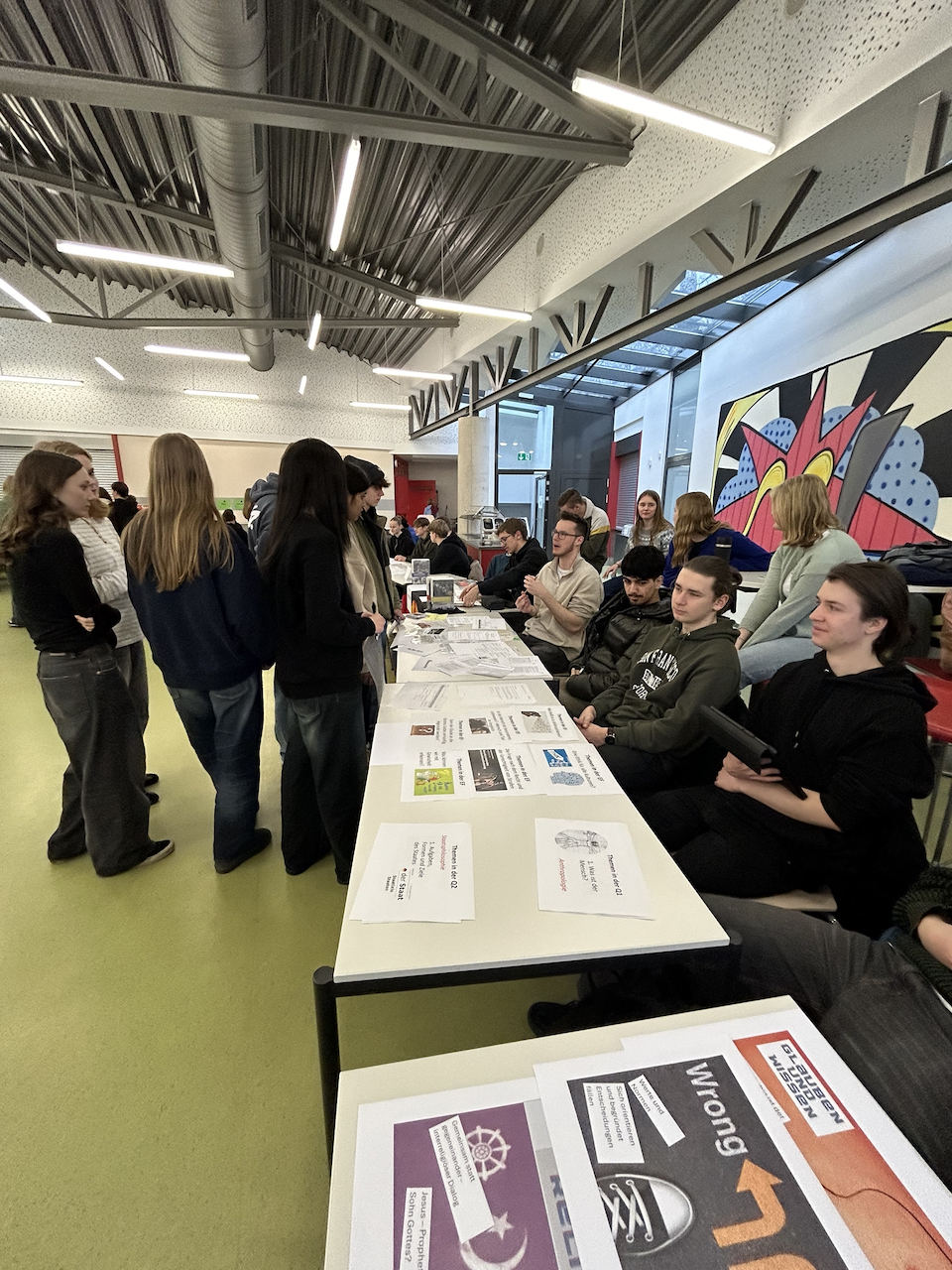 Beim Stöbern in den Materialien kamen die Schüler:innen der beiden Jahrgangsstufen in einen regen Austausch. Die Oberstufenschüler:innen berichteten von ihren Erfahrungen in den jeweiligen Fächern und ihre Motivation, den entsprechenden Kurs anzuwählen. Mit Hilfe dieses Schnuppermorgens, eines weiteren Informationsabend sowie der momentan laufenden individuellen Beratung durch die künftige Stufenleitung der EF können die 10er Schüler:innen fundiert ihre Entscheidungen für die Oberstufenwahlen treffen.