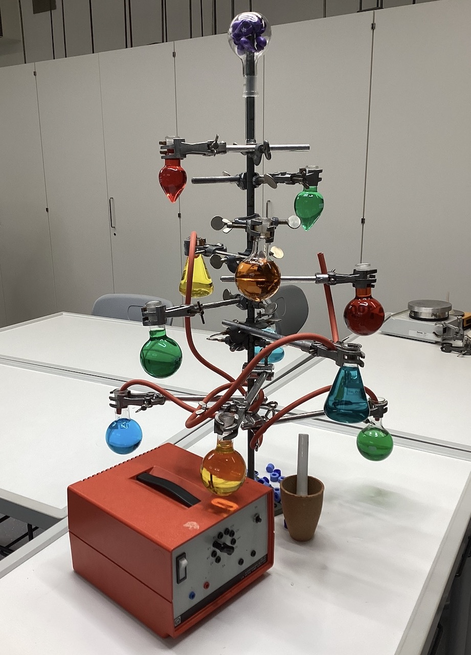 Etwas Weihnachtliches für die Website sendete der Q2-Chemie-Kurs von Herrn Dr. Brebeck, der in der letzten Unterrichtsstunde des Jahres Chemistrees gebaut hat.