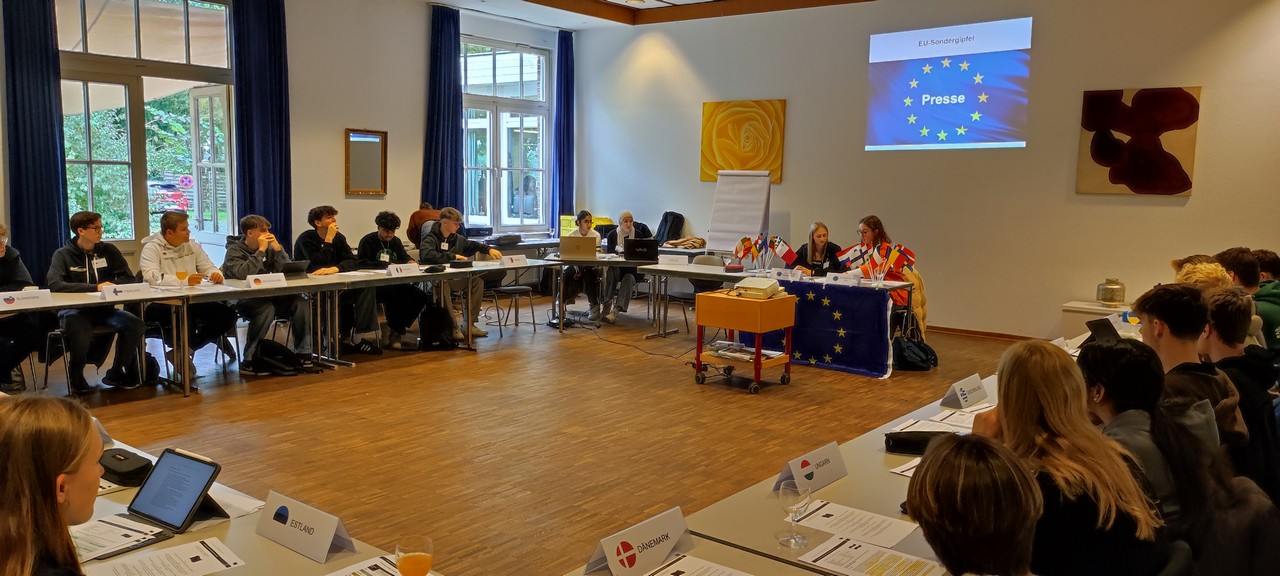 … war der Titel des Planspiels des Europateams NRW, an dem die Sowi - Leistungs- und Grundkurse der Q2 im Oktober 2023 in Lengerich teilnahmen. Das Planspiel thematisierte die Asyl- und Flüchtlingspolitik der EU.