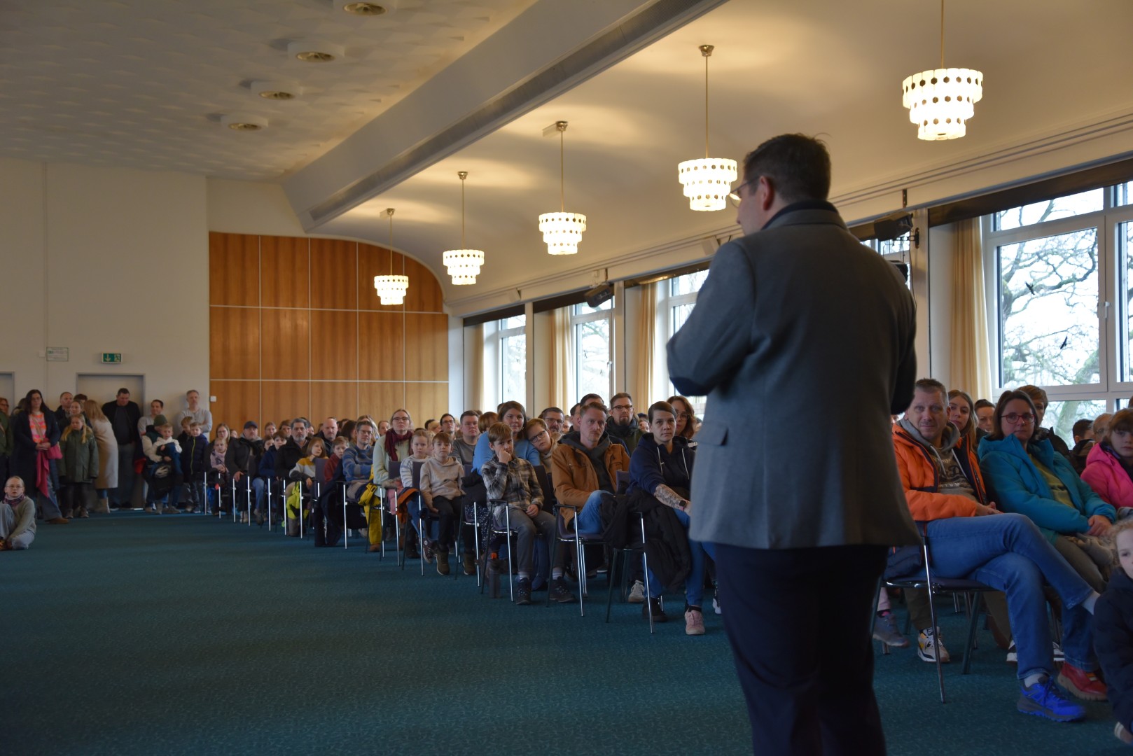 Am 11. Januar war es wieder so weit: Das Gymnasium Martinum öffnete seine Türen für alle Viertklässler/-innen und ihre Familien, um das Schulleben in seiner Vielfalt und Lebendigkeit vorzustellen. Rund 140 Schülerinnen und Schüler folgten dieser Einladung und füllten die Aula des Gymnasiums bis auf den letzten Platz. Nach einer herzlichen Begrüßung durch den Schulleiter Olaf Cimanowski und den Erprobungsstufenkoordinator Andreas Hellner startete für die Kinder und ihre Begleitpersonen ein buntes Programm.