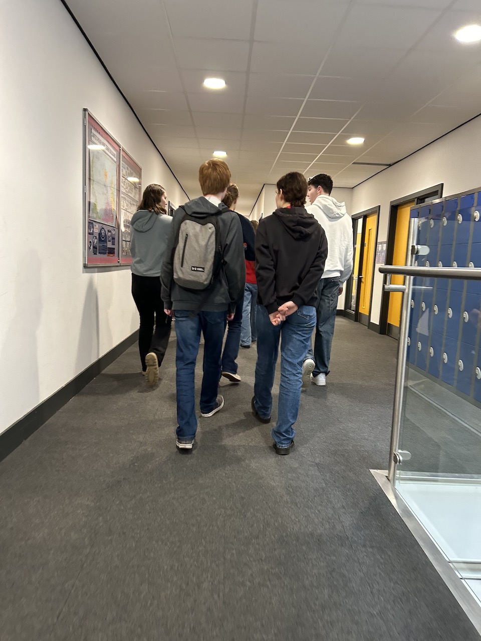 Am Montag konnte die deutschen Teilnehmer*innen dann das Schulleben am Abbeygate Sixth Form College kennenlernen. Bei einer Schulführung durch die englischen Schüler*innen Wilf Menuge und Lana Norton-Berry konnten sie verschiedenen Räumlichkeiten der Schule besichtigen. Marion Quellenberg-Brune, die nicht nur Englisch sondern auch Sport am Martinum unterrichtet, zeigte sich besonders begeistert von dem Tanzstudio und nutzte direkt die Gelegenheit, eine kleine Tanzstunde mit den Schüler*innen zu initiieren. Bei einer gemeinsamen Deutschstunde zum Thema „Jugend und Politik in Deutschland“ sowie der Hospitation in verschiedenen anderen Unterrichtsfächern konnten die deutschen Jugendlichen dann einen Eindruck vom Unterricht an der Partnerschule gewinnen.