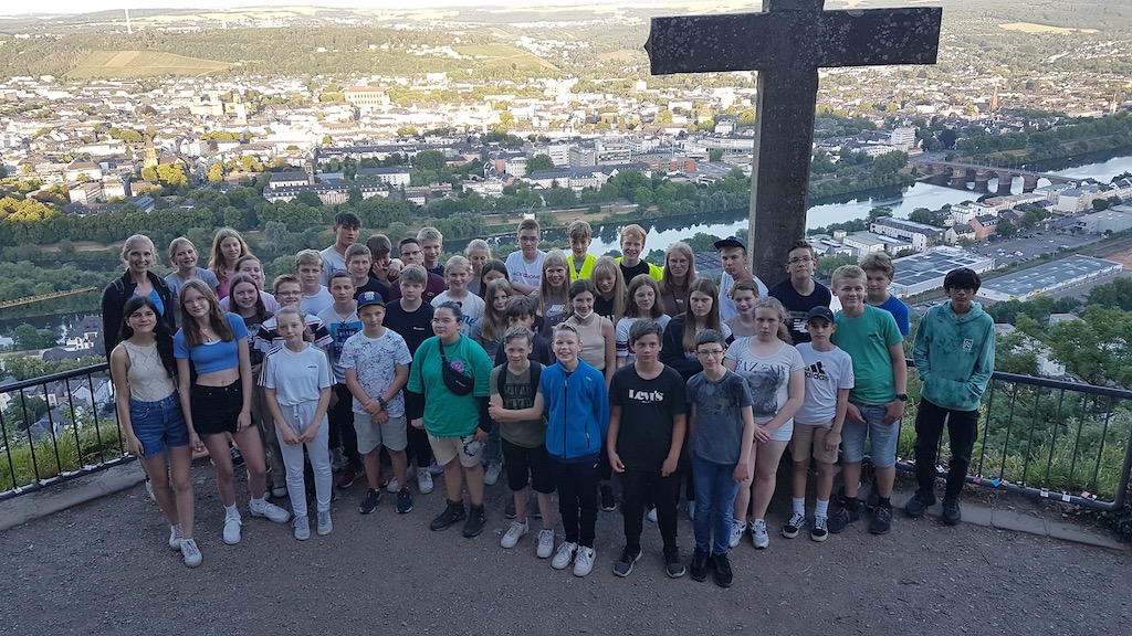 Am Montagmorgen trafen sich alle Lateinkurs-Teilnehmer am Hallenbad, um die gemeinsame Kursfahrt mit dem Bus zu beginnen. Bei der Abfahrt herrschte aufgeregte Stimmung, denn alle freuten sich auf die Fahrt nach Trier. Im Bus hörte man laute Musik und viele Gespräche. Man spürte das wunderbare Gefühl der Vorfreude.