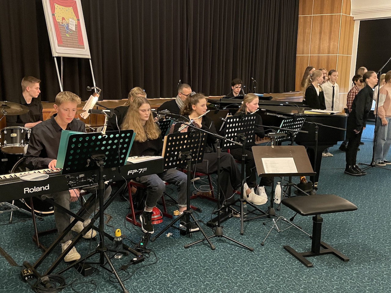 Ende Januar fanden nach dreijähriger Coronapause endlich wieder Aufführungen der Profilkurse "Musik und Theater" statt. Unterstützt wurden sie dabei vom Unterstufenchor und einer eigens zu diesem Anlass gegründeten Musicalband. Hier einige Impressionen der Aufführung.