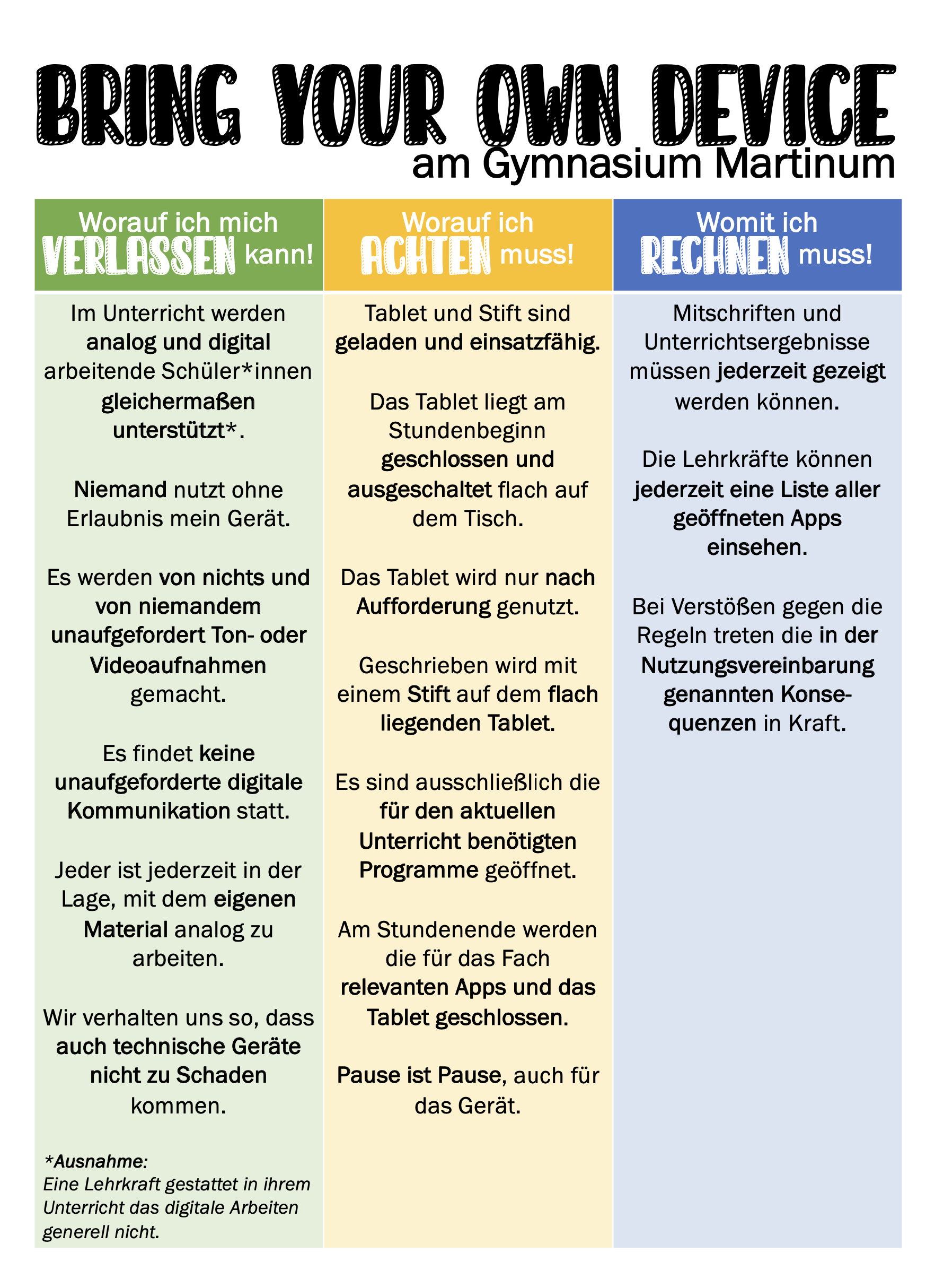 Bereits im Schuljahr 2016/17 wurde die Onlinearbeitsplattform Office365 am Martinum eingeführt, auf der die Lehrkräfte untereinander und mit Schüler*innen zusammenarbeiten. Jede Lehrkraft und auch alle Schüler*innen erhalten ihre schuleigene Email-Adresse, sodass jede*r auf diesem Weg erreichbar ist.