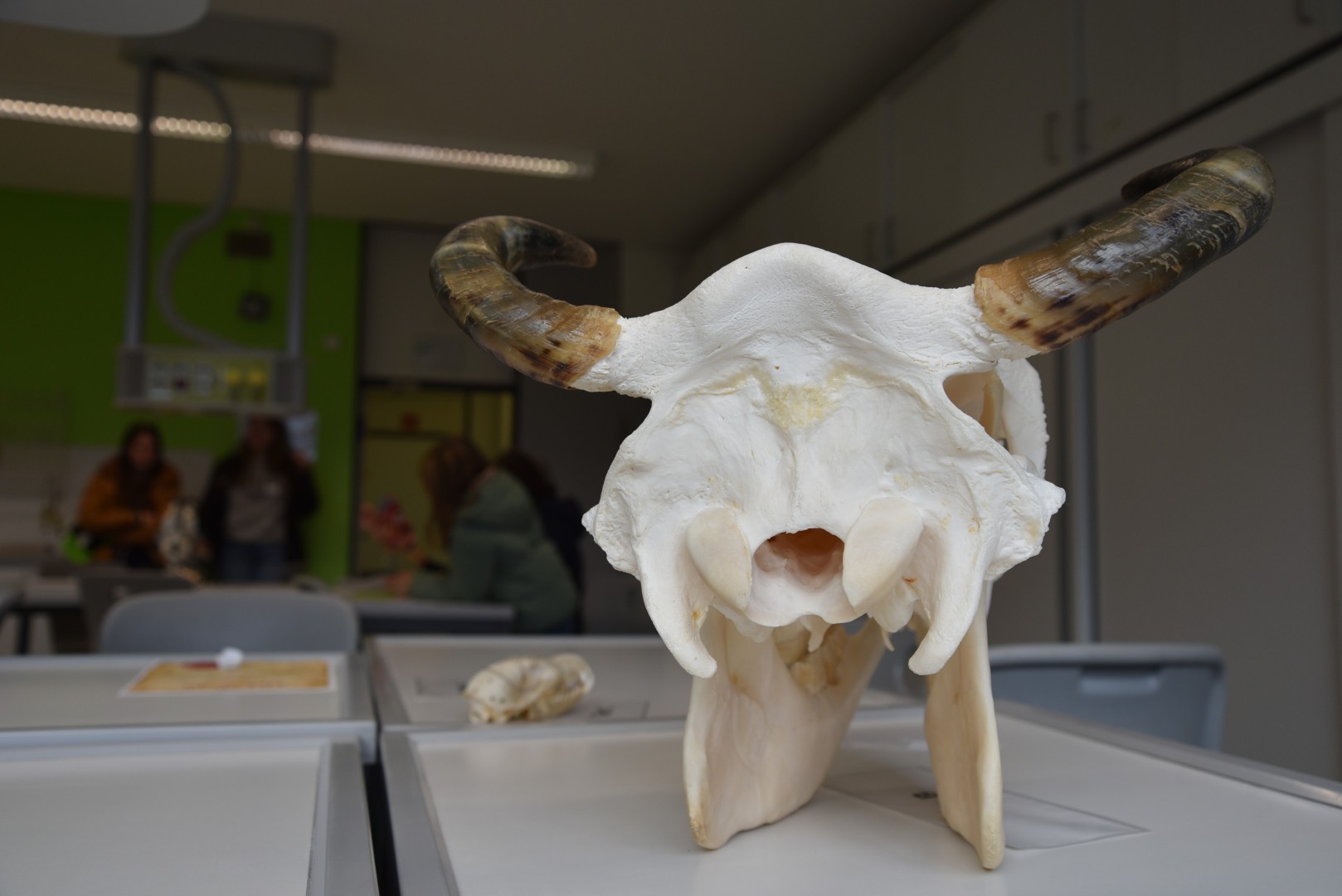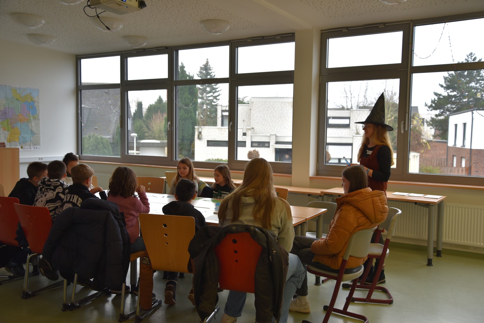In Kleingruppen erlebten die Viertklässler/-innen nun die Vielseitigkeit des gymnasialen Fächerspektrums. Dabei konnten sie in den modernen naturwissenschaftlichen Fachräumen des Gymnasiums Experimente durchführen und die Naturwissenschaften beispielsweise beim Mikroskopieren von Tierschädeln hautnah erleben. In den Fremdsprachen wurden mit Musik und Spiel die ersten Sprachkenntnisse vermittelt oder die Zaubersprüche von Harry Potter entschlüsselt. Zauberhaft ging es auch im Mathematikunterricht beim Erlernen von Zaubertricks weiter. Die Viertklässler/-innen wurden hierbei von Schüler/-innen höherer Jahrgangsstufen begleitet, die ihnen neben den Fach- und Lernräumen auch das Schulgelände mit dem großen und vielseitigen Außengelände zeigen konnten.
