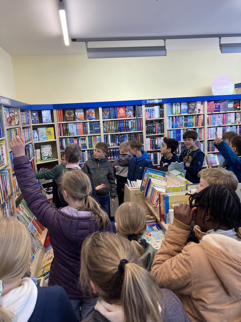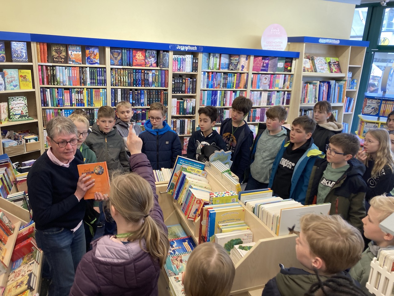 Anlässlich des Welttag des Buches am 23. April 2023 veranstaltete die Stiftung Lesen gemeinsam mit Buchhandlungen in ganz Deutschland wieder die Aktion „Ich schenke dir eine Geschichte“ für alle Viert- und Fünftklässler*innen. Hierbei erhielten die Schülerinnen und Schüler nicht nur einen Gutschein für das Jugendbuch „Volle Fahrt ins Abenteuer“, sondern auch die Gelegenheit, eine Buchhandlung aus der Nähe zu betrachten.