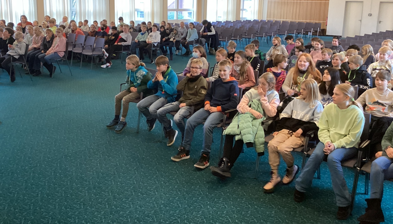 Nach der erfolgreichen Wette um die meisten Spenden zum Martinsfest kam es am Montag, dem 5. Dezember 2022, zur Einlösung des Wetteinsatzes. Dafür gingen alle Fünftklässer*innen des Martinums in der fünften Stunde in die Aula, da dort als Wetteinlösung ein Rudelsingen stattfinden sollte.