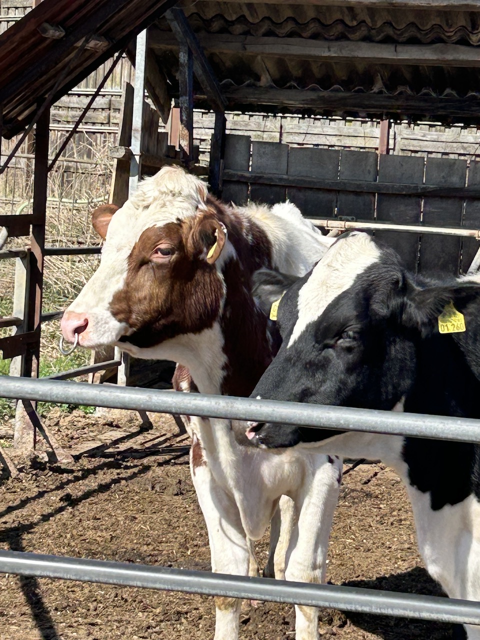 Am 3.4. waren wir, die 5a, beim Milchhof Feldmann in Isendorf. Pro Weg sind wir drei Kilometer gelaufen. Es hat ungefähr 45 Minuten gedauert, bis wir beim Milchhof Feldmann angekommen sind. Boris und Maren sind die Eigentümer des Hofes und haben uns herumgeführt. Boris ist die dritte Generation des Hofes. Auf Boris und Marens Hof sind insgesamt 230 Tiere. Im großen Boxenlaufstall sind 120 Milchkühe. Im großen Boxenlaufstall gibt es zwei Melkroboter, die jeweils die Kühe mehrmals am Tag melken. Sie sind sehr teuer. Unter den ca. 230 Tieren ist nur eine Bulle für die Zucht. Nach einigen Jahren wird der Bulle ausgetauscht, da er anfängt, seine Herde zu beschützen. Dies gefährdet auch den Bauern oder die Bäuerin, da der Bulle seine Herde auch vor ihnen beschützt. Der Bulle bekommt einen Nasenring, damit man ihn führen kann. Aber nicht alle Kühe werden von dem Bullen befruchtet. Die Färsen (also die weiblichen Rinder, die noch nicht gekalbt haben) werden nur für das erste Kalb vom Bullen befruchtet, danach werden sie in der Regel künstlich befruchtet.