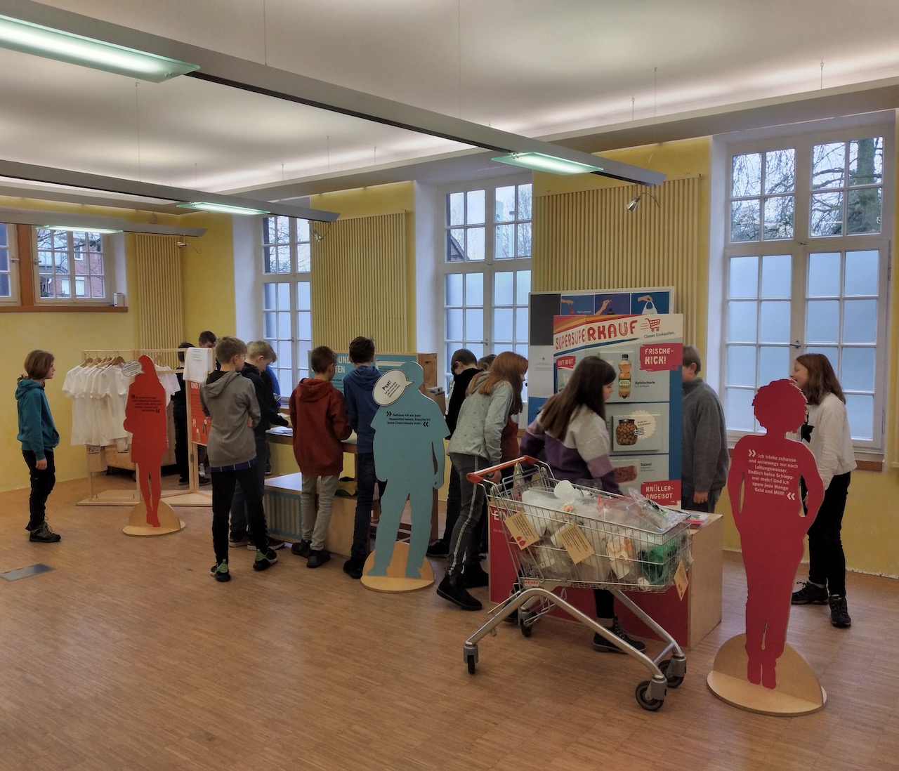 In fünf anschaulichen Stationen vertieften sich die jungen Schülerinnen und Schüler in Aspekte wie „Essen und Genießen“, „Kleidung und Mode“ oder auch „Freizeit und unterwegs sein“. Für Wettbewerbsgeist sorgte das abschließende ausführliche Überblicksquiz, das Frau Prinz, Umweltmanagerin der Stadt, mit der Gruppe spielte. So wurde nicht nur Mitschüler Jaron klar, „dass so viele unscheinbare Sachen so viel bewirken“, wie er sagte.