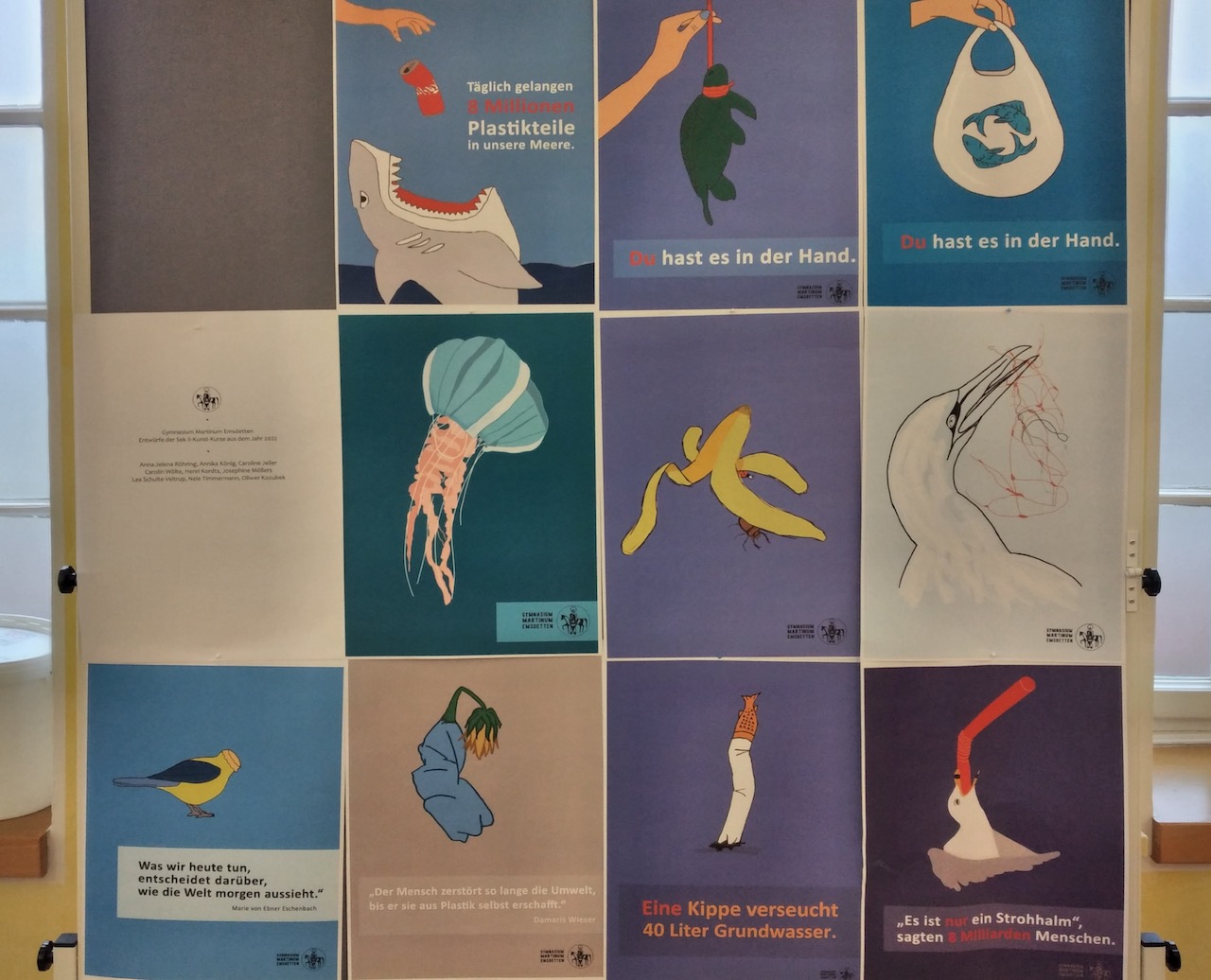 In einer informativen Ausstellung im Hof Deitmar wurde der Gruppe deutlich, wie unser Einkaufen und Verbrauchen gerade auch mit der Klimaentwicklung zusammenhängt. Dabei stieß die Klasse nebenbei auf etliche eindrückliche Grafiken, die im vergangenen Schuljahr Kurse der Oberstufe unserer Schule erstellt hatten.