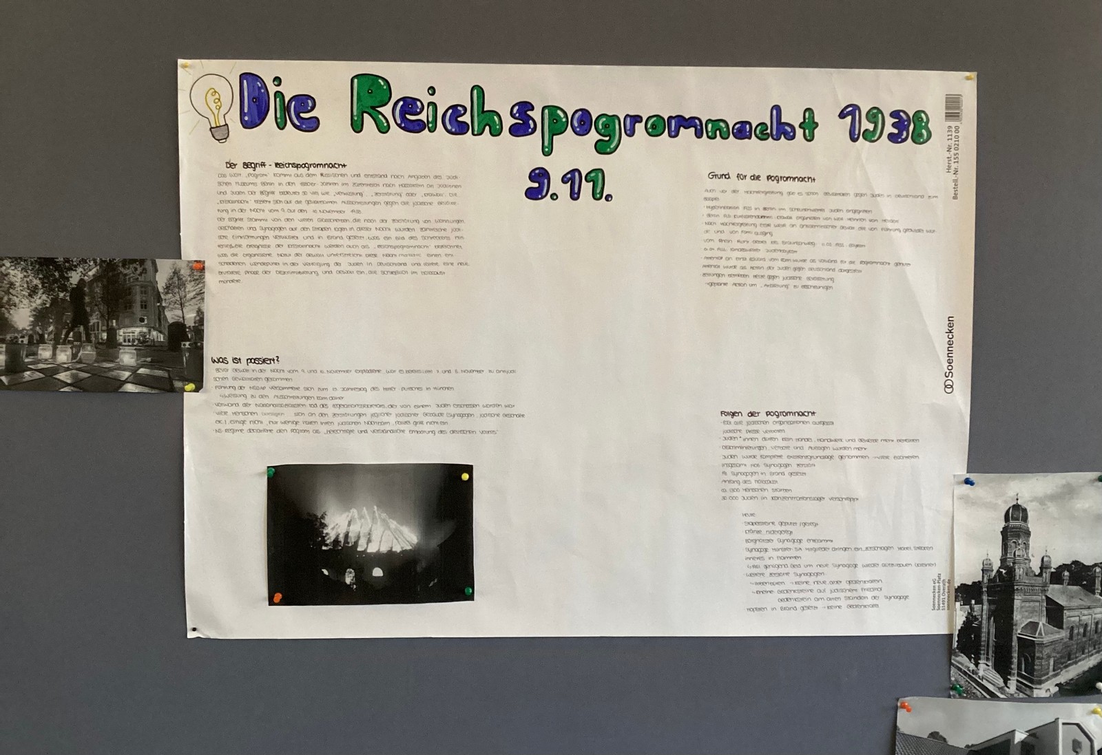 Der 9. November ist ein bedeutendes Datum in der deutschen Geschichte. Im Rahmen der Arbeitsgruppe zur Demokratieförderung entstand am Martinum der Wunsch, dass wir als Schule ausgewählte Gedenktage begehen. Die Gestaltung zum 9. November übernahm nun die Jahrgangsstufe 10 und lud die Klassen der Jahrgangstufe 8 und 9 am vergangenen Freitag in die Aula des Martinums ein. Unter Leitung von Frau Wolbeck und Frau Bloom haben die Klassen 10a und 10c verschiedene Medien der Erinnerung erstellt, die wir hier noch einmal für die Schulgemeinde sichtbar machen wollen.