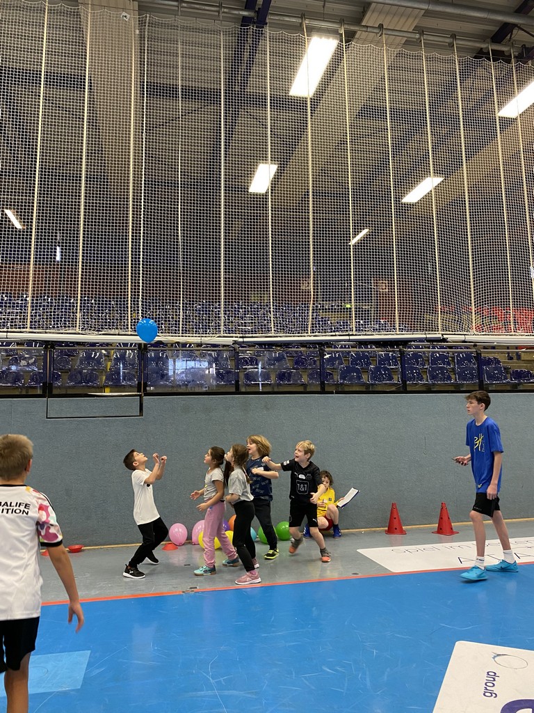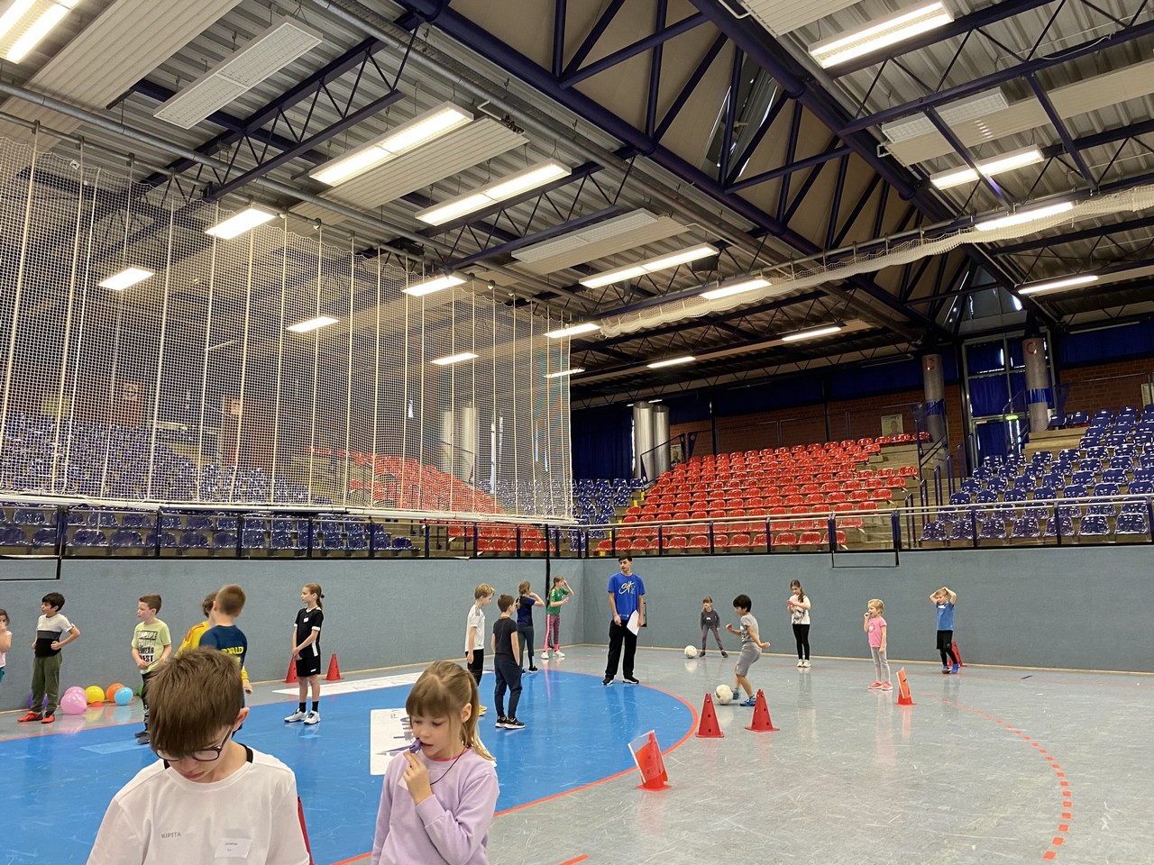 Am 25.01.2024 fand das alljährliche Hallensportfest der Kardinal von Galen Grundschule in der Emshalle statt. Herr Weidner, der momentan auch an der Grundschule tätig ist, und Frau Gerlach planten hierfür eine Kooperation, die möglicherweise der Anfang einer langfristigen Zusammenarbeit sein könnte.
