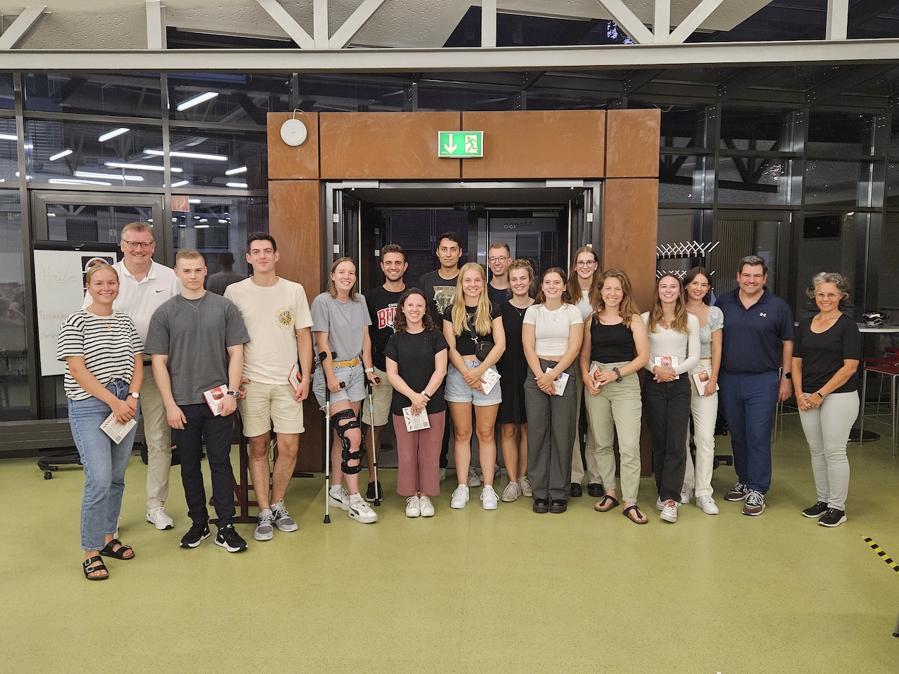 Aus den Abiturjahrgängen 2016 bis 2022 hatten sich insgesamt 15 Ehemalige in der Mensa des Gymnasiums versammelt, um den Schülerinnen und Schülern der Jahrgangsstufen 10, Q1 und Q2 für deren Anliegen rund um Studium und Berufseinstieg zur Verfügung zu stehen. Und die Fragen der Martinum-Schülerinnen und -Schüler spannten einen weiten Bogen von „Was ist eigentlich ein Semester?“, „Was ist ein NC?“, „Wie funktioniert ein Auslandssemester?“ bis zu Fragen nach Spezialisierungen im Bachelor- und Masterstudiengang einer Fachrichtung. Entsprechend der Interessensschwerpunkte der Schülerinnen und Schüler waren Ehemalige aus ganz unterschiedlichen Fachrichtungen und aus ganz Deutschland gekommen, um in Kleingruppen Einblicke in ihren Weg vom Martinum in Studium und Beruf zu geben.