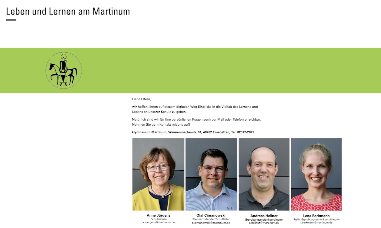 Wir haben zwei verschiedene Websites - eine für Schüler*innen und eine für Eltern - zusammengestellt, um Ihnen und Ihren Kindern einen Einblick in das Leben und Lernen am Martinum zu ermöglichen.